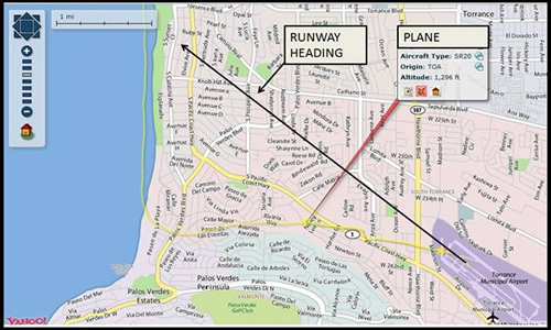 However, most violations, such as the actual flight shown below, are ignored by City staff. This is a common occurrence and it adds plane noise over the Riviera, which already has a high volume of helicopter traffic.