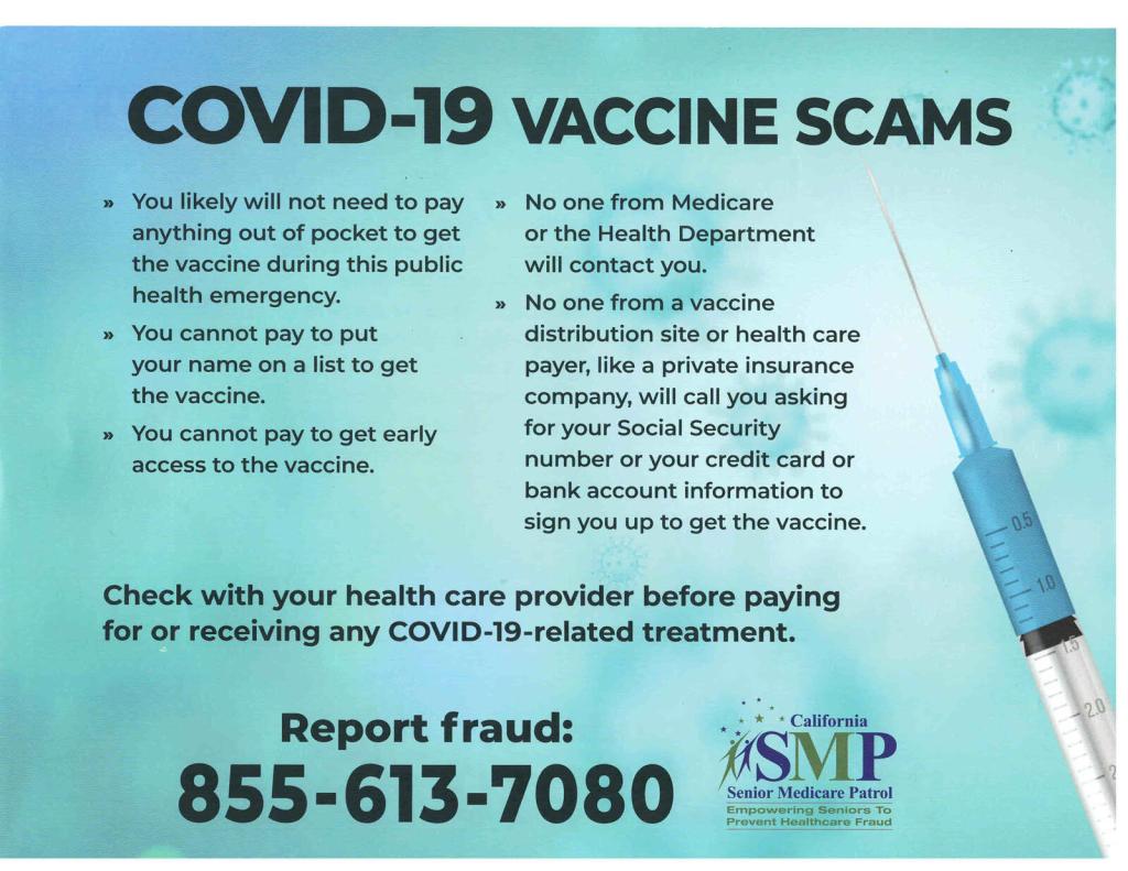 We aren’t going to try providing guidance on how to get your vaccination, given the questions over supply and distribution, though we do encourage you to do so when the time comes. Please continue to protect your health, and your pocketbook – with this advice from Senior Medicare Patrol: