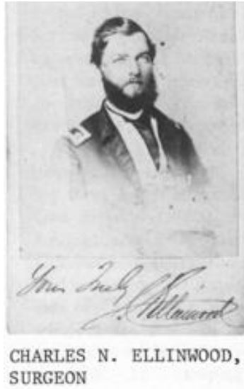 Charles Norman Ellinwood, born in Vermont in 1834, became a well-respected physician in the San Francisco Bay area. Attending medical school in Chicago in 1858 and continuing his studies in Paris until 1862, he joined the 74th Illinois Volunteer Infantry Regiment, assembled in Rockford, IL on 4 Sept. 1862, and operated as a surgeon in the U.S. Civil War for Lincoln’s army until his discharge as medical director on 10 June 1865. In 1866,