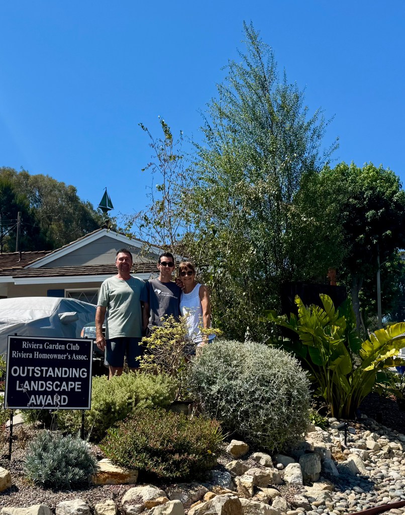 This summer’s Outstanding Landscape Award goes to Imants and Cristina Eglitis at 4822 Via El Sereno. Their yard evolved naturally over the past few years. The family enjoys gardening, and they had no set plan. Their main goals with the landscape are low maintenance, water tolerance, and gopher resistance.