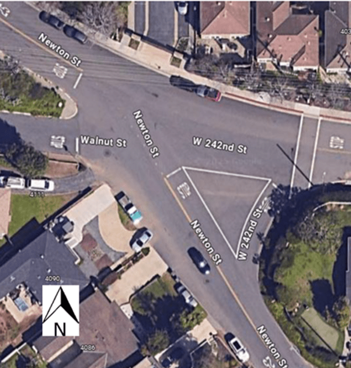 The 3-way stop at Newton Street, 242nd Street, and Walnut Street has been problematic, and it was a topic of discussion at the recent Torrance City Traffic Commission meeting. Many neighbors attended and spoke about concerns regarding the Triangle Intersection and speeding on Newton Street.