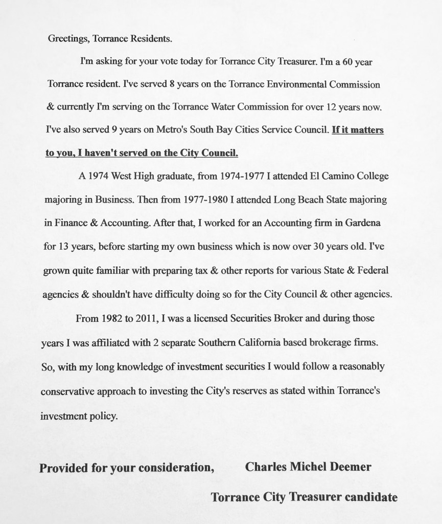 Filed under: General Meeting, Hillside Overlay Ordinance, Torrance Airport, Torrance City Council, Torrance Elections | Tagged: City Council Torrance City Council, local candidates, local elections, Torrance Mayor, Torrance Treasurer |