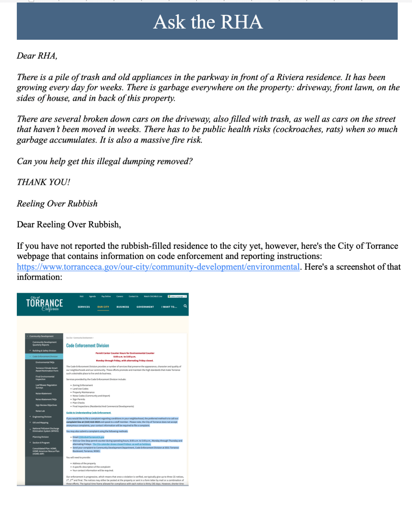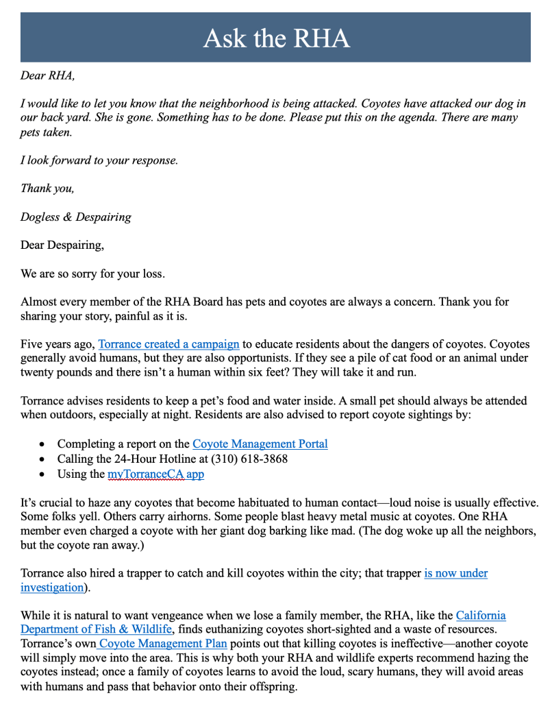 Have questions about a community-related topic? Let us know by clicking on the link below! Ask the RHA!