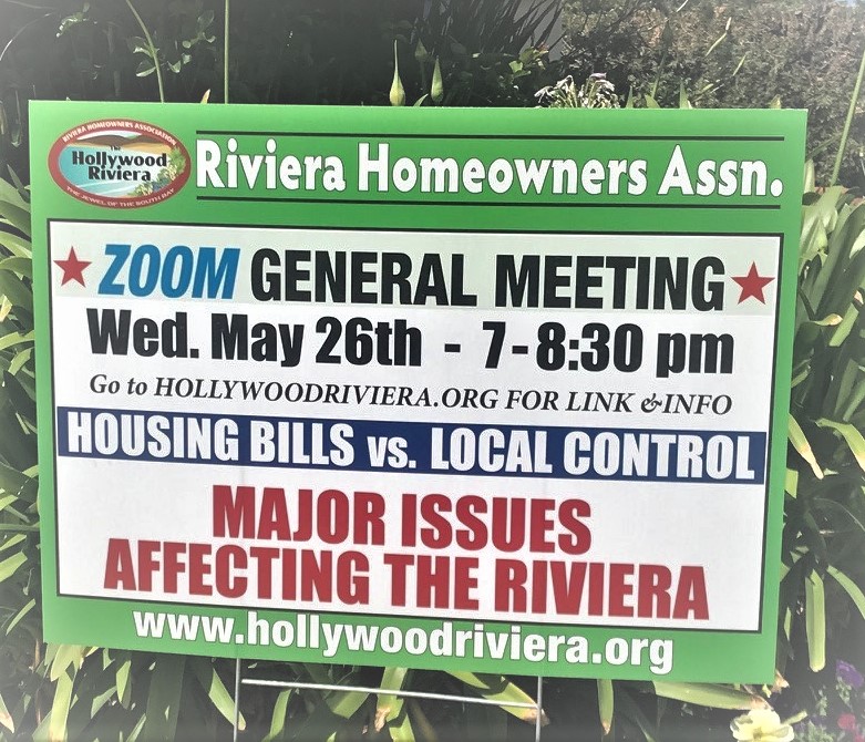 All Riviera residents are invited to attend next week’s general meeting beginning at 7:00PM