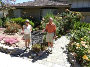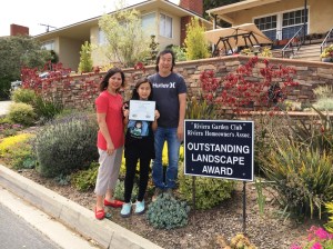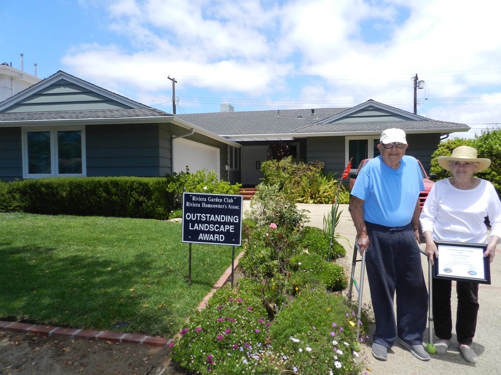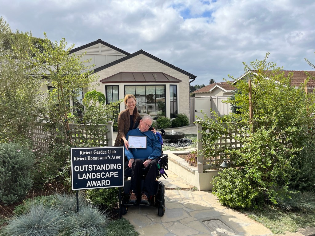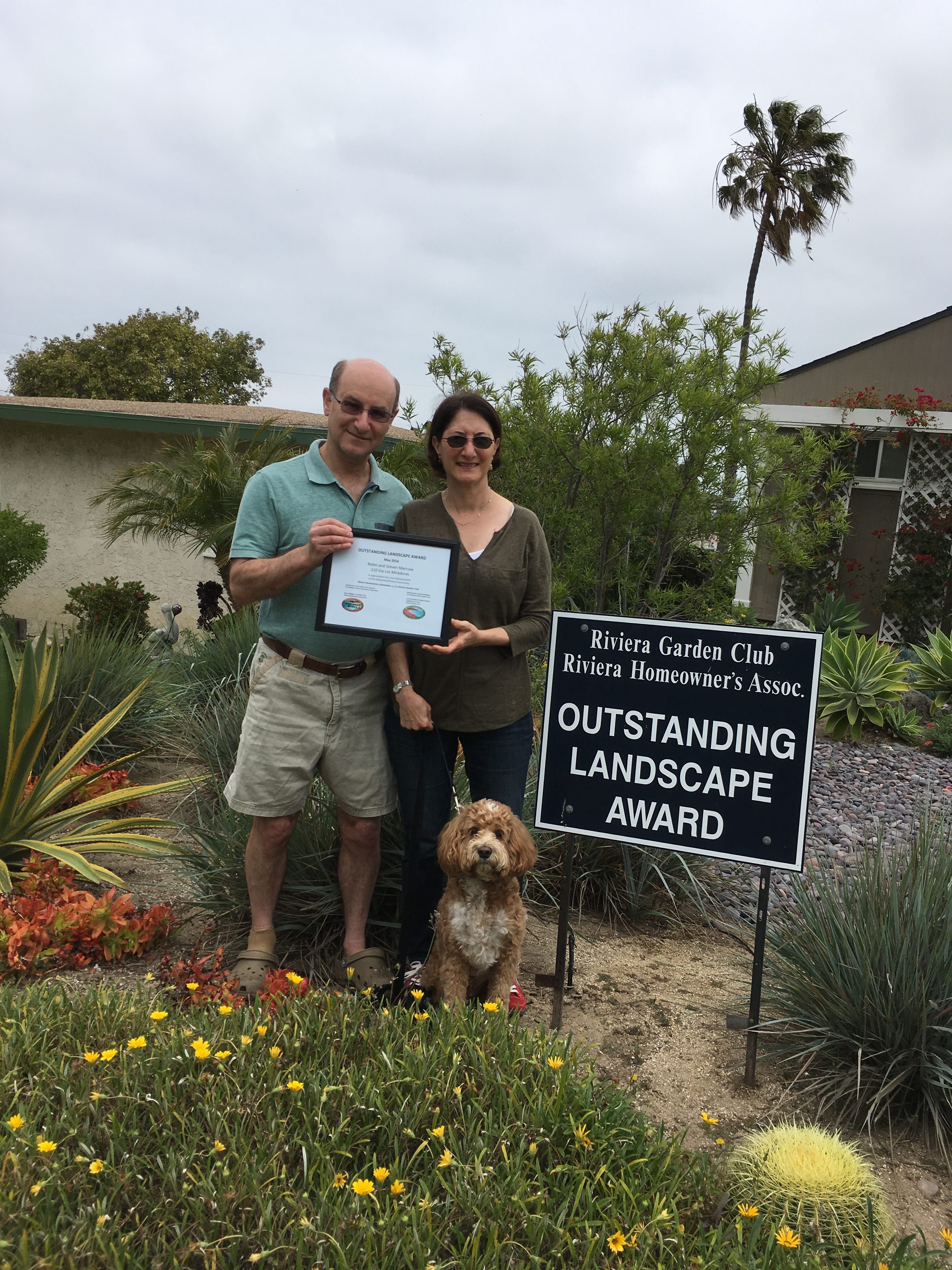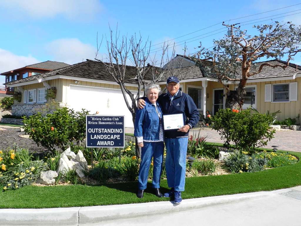 Designed and installed by the late Bill Petitt, long time South Bay naturalist, the garden features several species of southern California coastal natives, such as California Bush Sunflower, white sage, beach evening primrose, and California Sagebrush. All surrounding a magnificent olive tree transplanted from a small pot years ago. This couple has shown that a dramatic native, pollinator-friendly landscape can thrive in the Riviera’s sandy soils with sparingly little watering and with no need for fertilizer or herbicide.